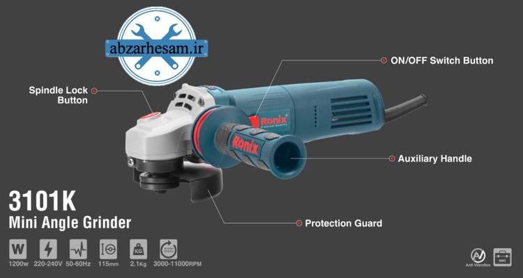 ارائهشده همراه با دسته جانبی رونیکس، محافظ صفحه 115 میلیمتر، ذغال، آچار