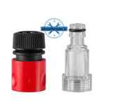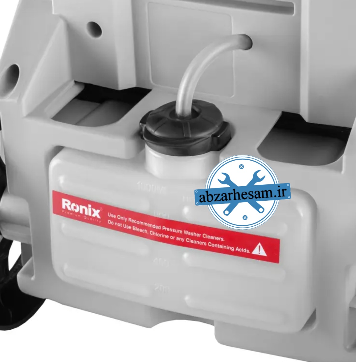 ارائهشده در کارتن رونیکس همراه با کوپلینگ اتصال سریع، رابط ورودی یکطرفه، لانس قابل تنظیم و توربو، شلنگ 5 متری فشار قوی PVC، مخزن مواد شوینده، تفنگ آبپاش فشار قوی
