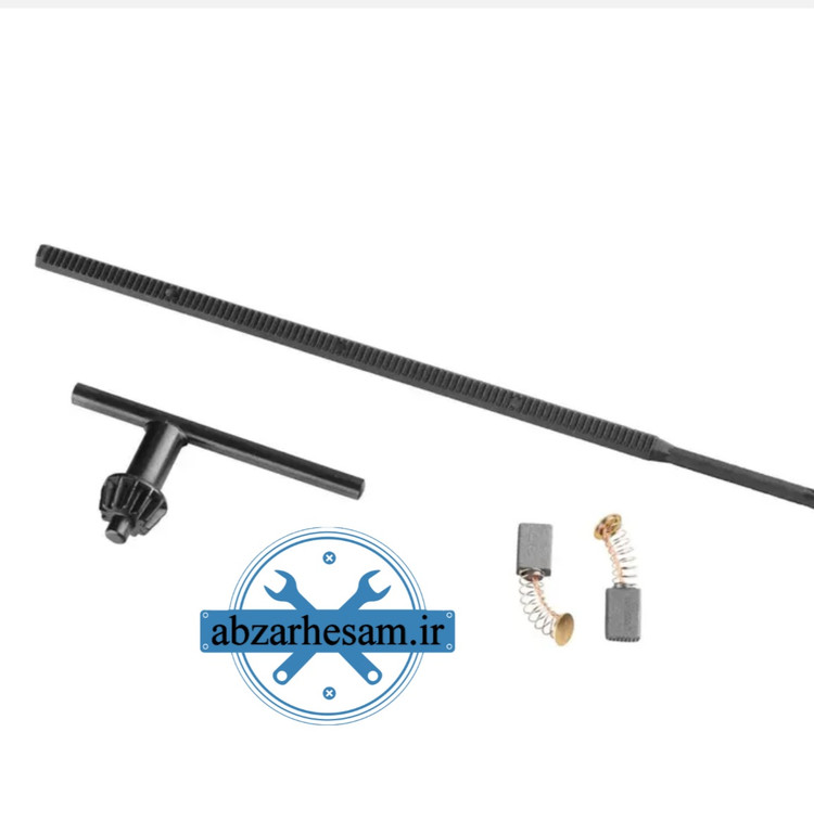 ارائهشده در جعبه رنگی رونیکس همراه با دستهی جانبی، میلهی تنظیم عمق، آچار سه نظام
