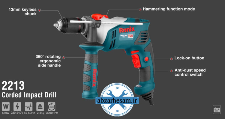 دریل چکشی اتوماتیک رونیکس 13 میلی متری 650 وات مدل 2213