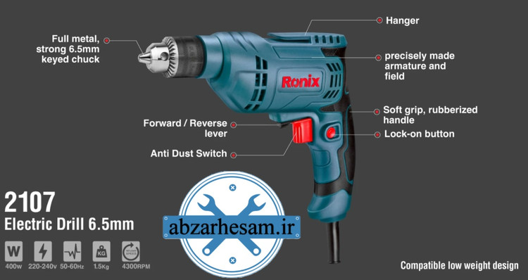 اگر به فکر خرید دریلی کوچک، خوشدست و در عین حال، قدرتمند هستید، دریل برقی 2107 رونیکس مناسب شما است!