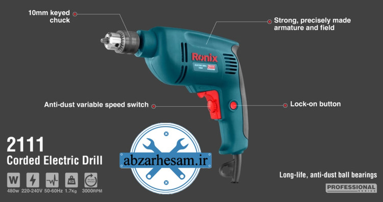 دریل آچاری رونیکس 10 میلی متری 480 وات مدل 2111