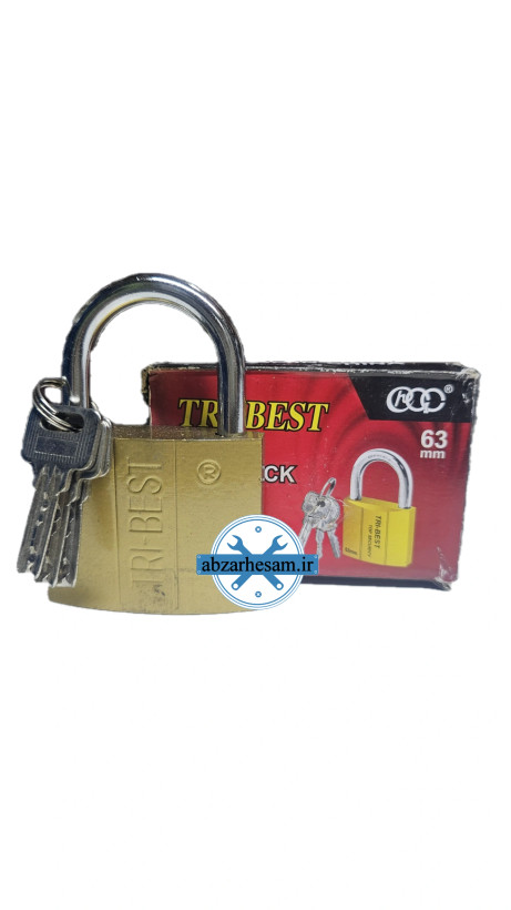 قفل آویز 63 یک قفل آویز طرح برنجی است که به دلیل استفاده از آلیاژ برنج در مغزی قفل که یک آلیاژ مقاوم در برابر ضربه و برش می باشد به این نام شناخته می شود و به امنیت قفل بسیار کمک می کند.