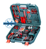 • سایر متعلقات: انبردست، متر، کمان اره، کاتر، 10 عدد تیغه کاتر، چسب برق، تستر الکتریکی، پیچگوشتی دوسو و چهارسو، پیچگوشتی ساعتی، آچارهای آلن، سریهای بکس ¼ اینچ، سریهای پیچ گوشتی، مته و سریهای مته، رول پلاک و پیچ.