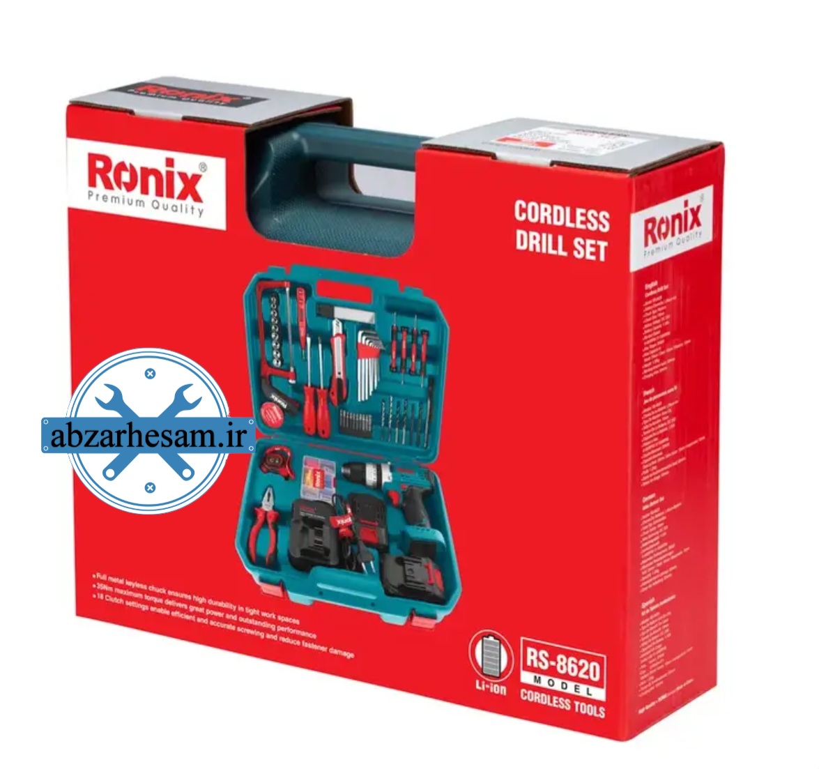 دریل چکشی، متهها، سریهای پیچگوشتی و سایر متعلقات در کیت RS-8620 رونیکس، در نهایت دقت و با کیفیت بالا تولید شدهاند تا پاسخگوی نیازهای شما باشند. تمام متهها و قطعات فلزی این مجموعه، سختکاریشده و ضد خوردگی هستند.