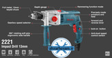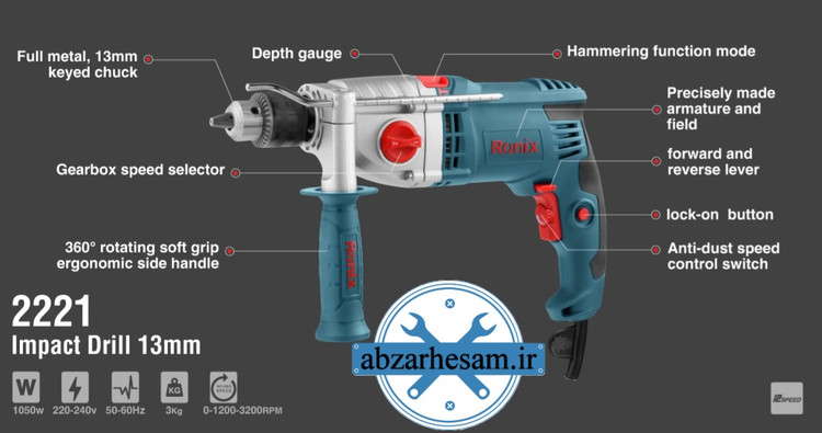 دریل گیربکسی رونیکس 13 میلی متری 1050 وات مدل 2221