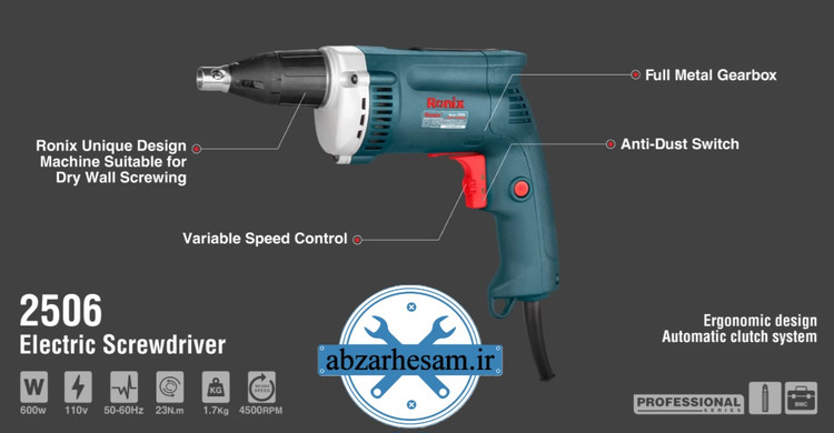 پیچ گوشتی برقی 2506 رونیکس: موتور قدرتمند 600 وات؛ گیربکس صنعتی؛ بدنه ارگونومیک