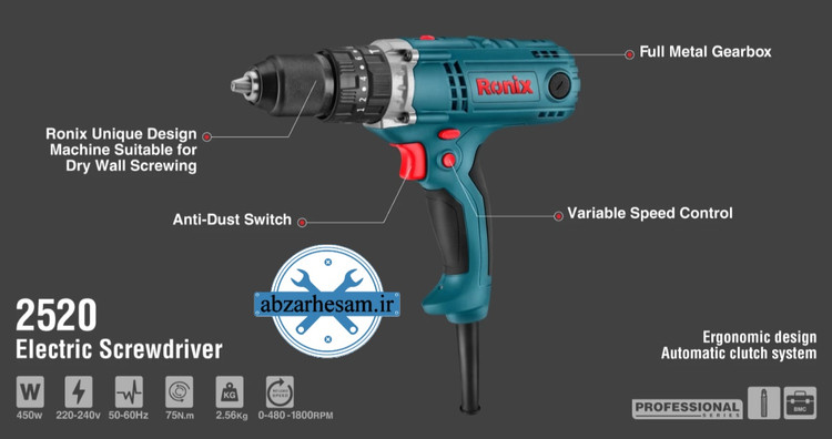 پیچ گوشتی برقی چکشی صنعتی 450 وات 2520 رونیکس، حرفهایترین و بهترین انتخاب برای شما!