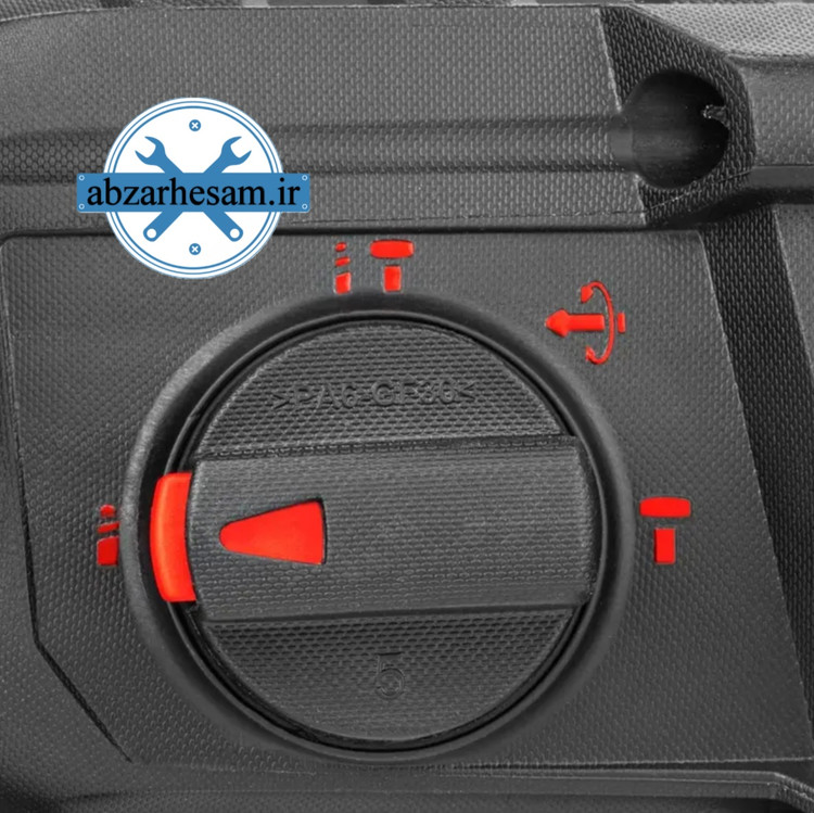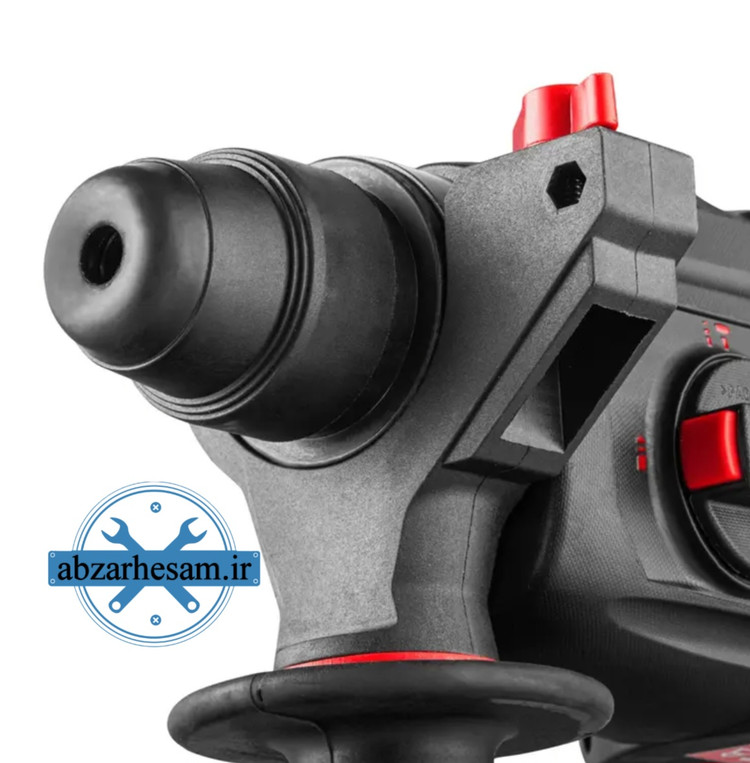 ابزارگیر چهارشیار (SDS-PLUS) ضد غبار 24 میلیمتری؛ با قابلیت تعویض آسان مته. ظرفیت سوراخکاری در فلز 13 میلیمتر و در چوب 30 میلیمتر است.