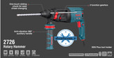 موتور قدرتمند 850 وات؛ ولتاژ 240-220 ولت؛ فرکانس 60-50 هرتز؛ سرعت در حالت آزاد در محدودهی 1200-0 دور بر دقیقه؛ قابل تنظیم در 4 عملکرد مجزای سوراخکاری، سوراخکاری چکشی، تخریب و خلاصکن