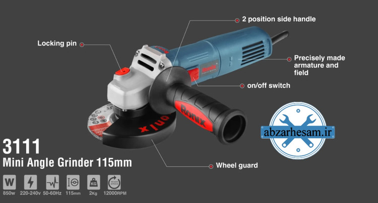 به قطر 115 میلیمتر؛ دارای قابلیت تعویض سریع و آسان؛ ارائهشده با گارد محافظ صفحهی برش