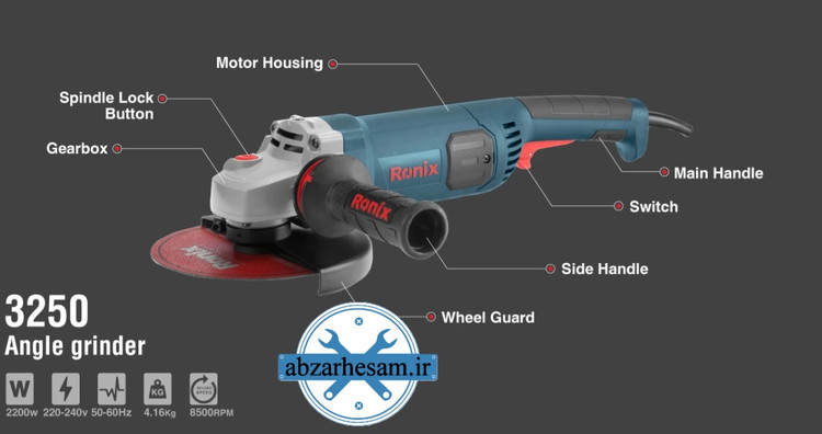 موتور قدرتمند به ولتاژ 240-220 ولت، توان 2200 وات؛ فرکانس 60-50 هرتز؛ متشکل از آرمیچر و بالشتک صنعتی با بالاترین کیفیت؛ قابلیت ایجاد سرعت در حالت آزاد بالغ بر 8500 دور در دقیقه متناسب با برش دقیق و باکیفیت فلزات؛ ساختهشده از مواد باکیفیت و مطابق با استانداردهای روز دنیا