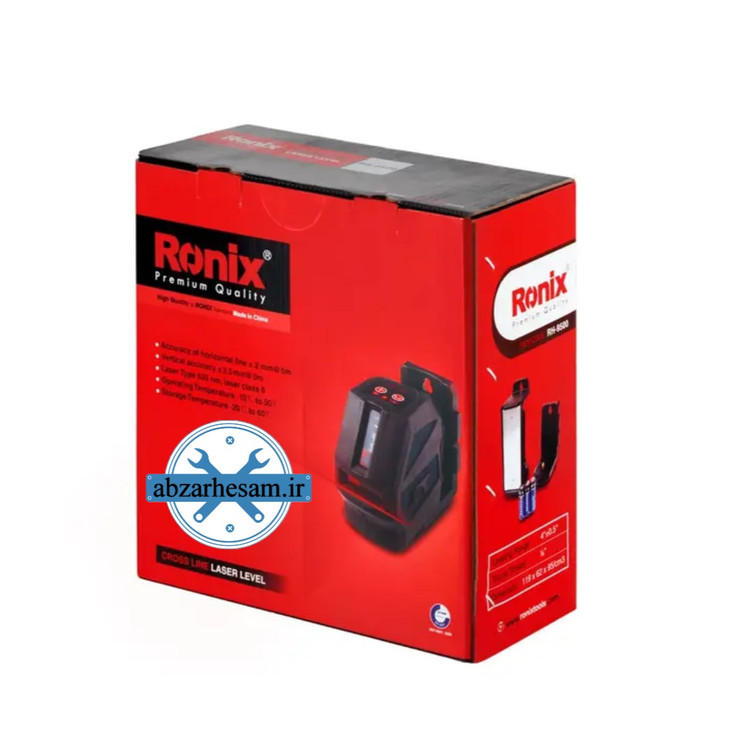 برد ابزار با رسیور در محدوده 10 متر بوده و دقت اندازهگیری خطوط عمودی و افقی 2± میلیمتر در 5 متر است.